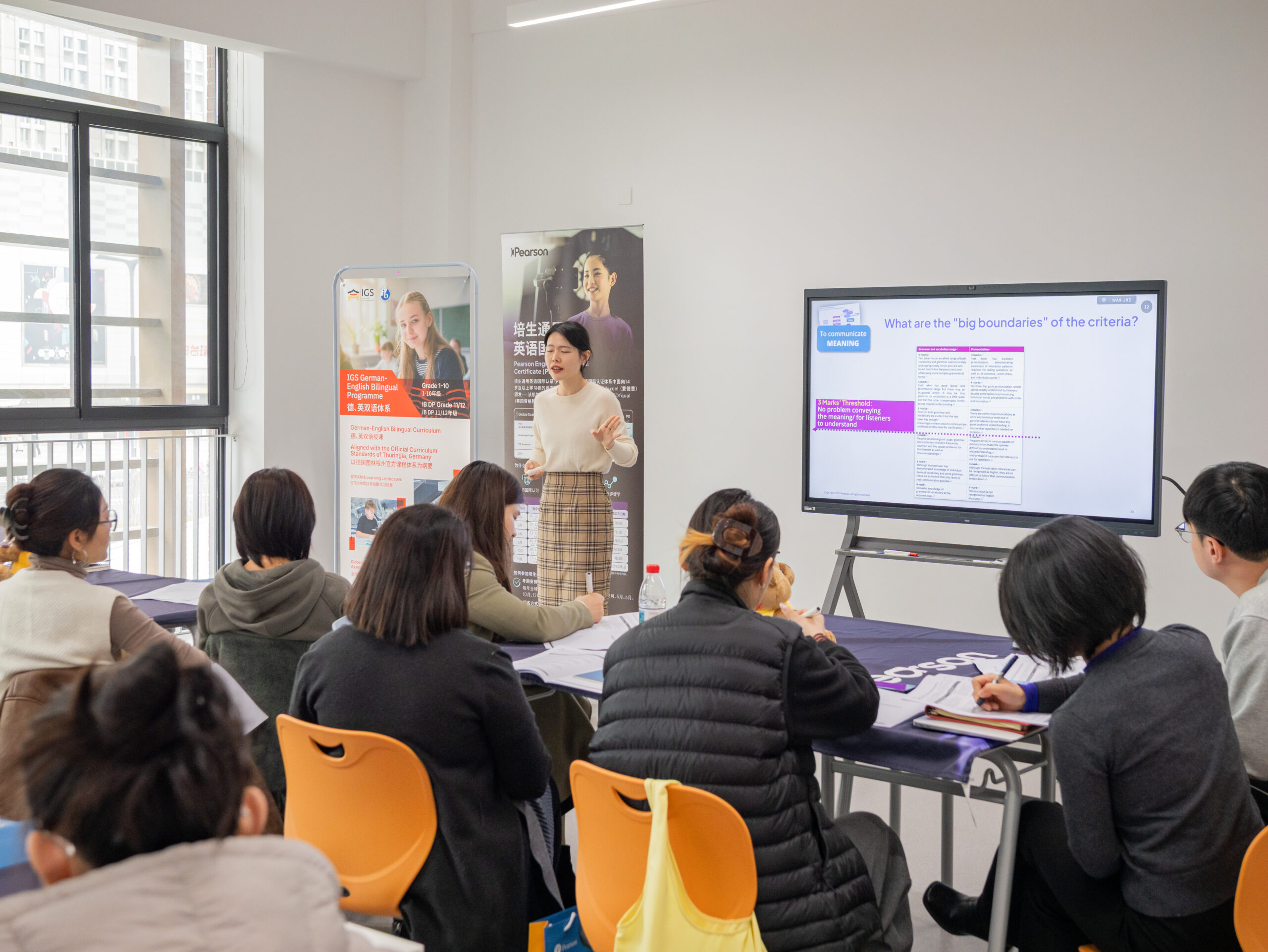Nach dem feierlichen Teil führte das Pearson-Team eine Fachschulung für die zukünftigen Prüferinnen und Prüfer durch. Im Mittelpunkt standen dabei das PEIC-Bewertungssystem, Beurteilungsstandards, Prüfungsabläufe, Bewertungskriterien und die ordnungsgemäße Durchführung der Prüfungen. Damit wurde eine wichtige fachliche Grundlage für die standardisierte und qualitätsgesicherte Umsetzung zukünftiger Assessments geschaffen.