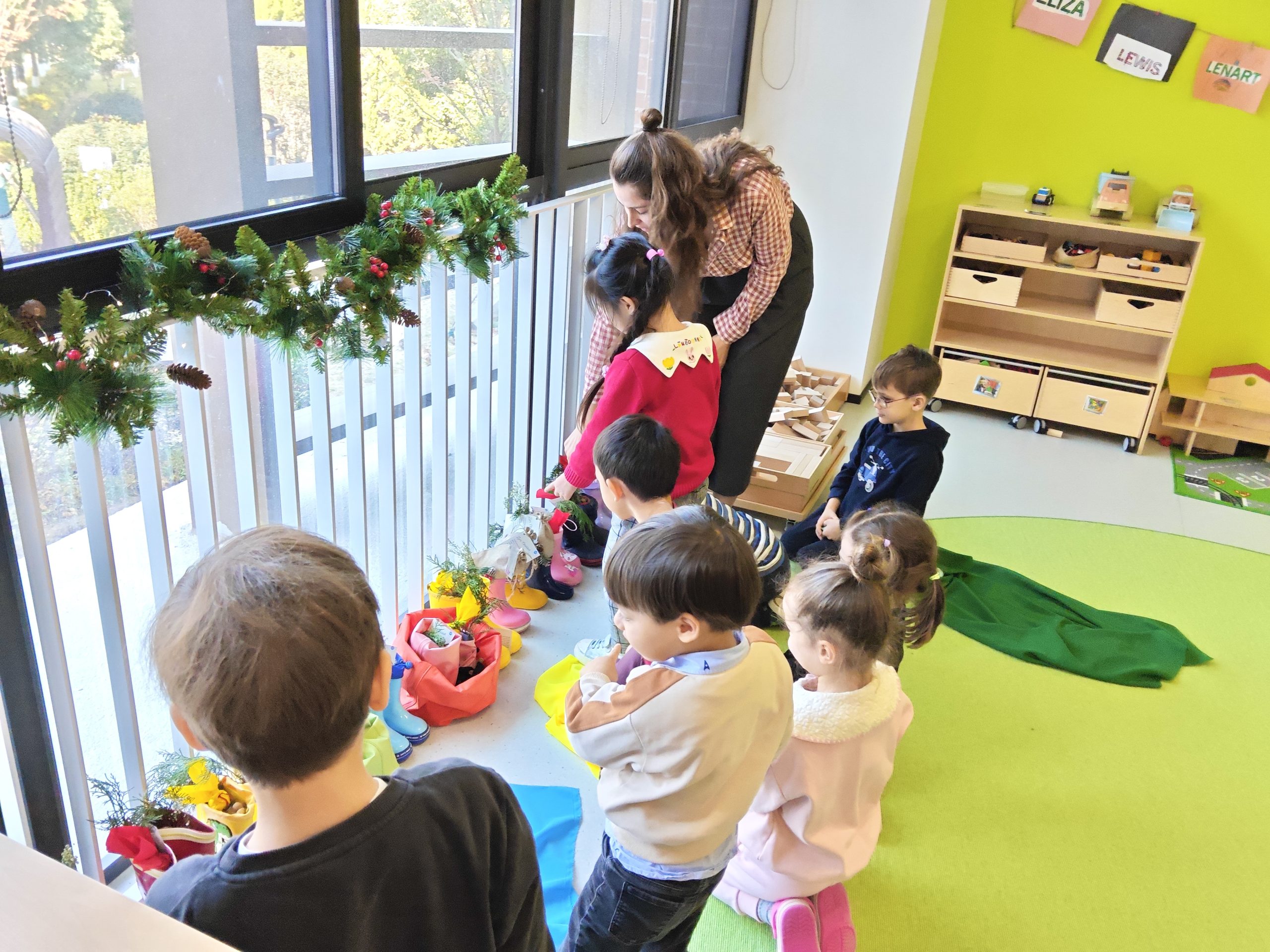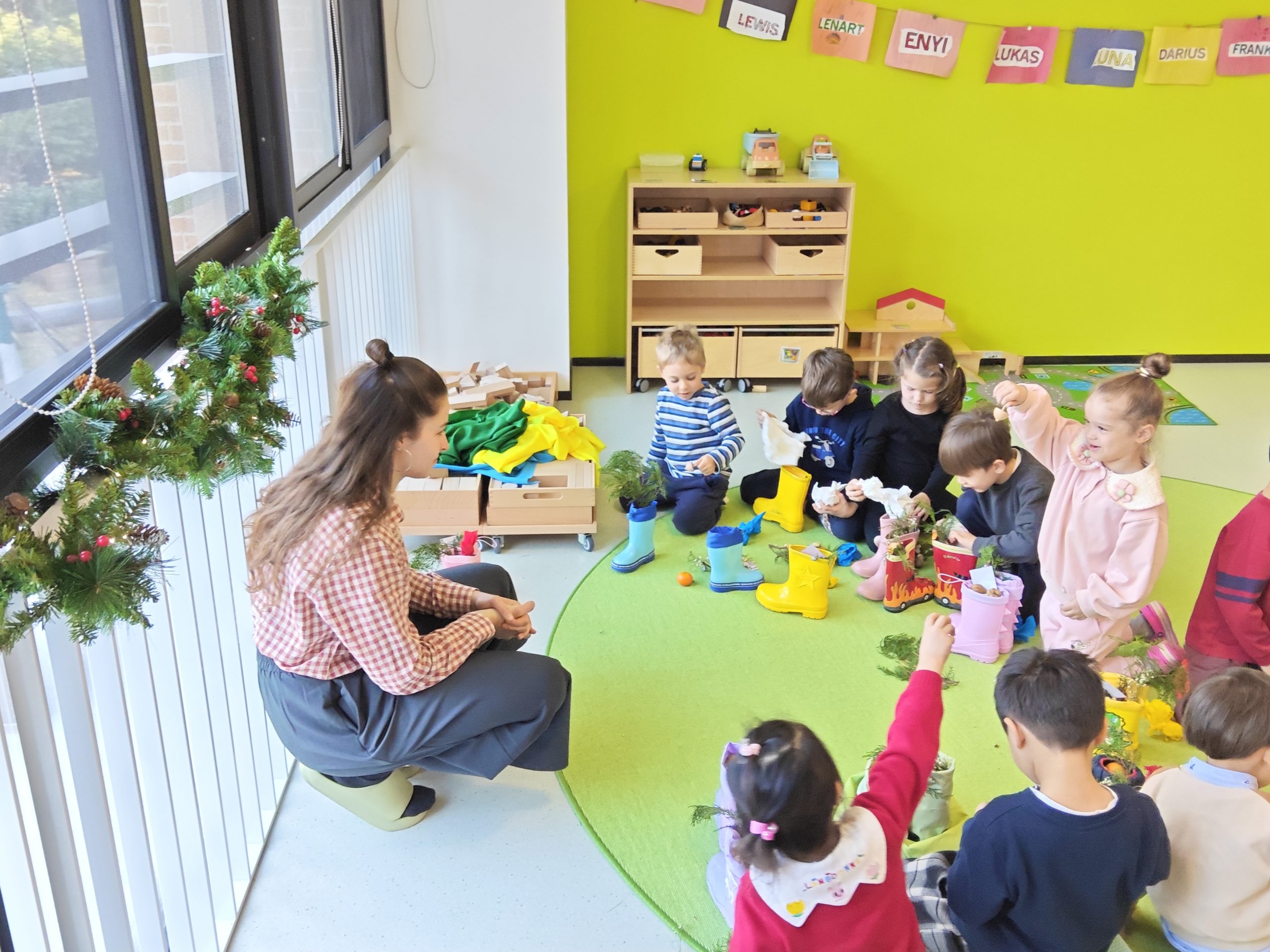 Am Freitag, dem 5. Dezember, feierten wir gemeinsam mit den Kindern den Nikolaustag. Als sie ankamen, leuchteten ihre Augen auf, als sie die liebevoll geschmückten Räume entdeckten. Über Nacht war der Nikolaus in unserem Kindergarten gewesen und hatte einige Überraschungen für sie vorbereitet: Ihre kleinen Gummistiefel, gefüllt mit kleinen Geschenken, und einer persönlichen Botschaft für jedes Kind. Eine individuelle, anerkennende Nachricht, die der Nikolaus extra für sie geschrieben hatte.