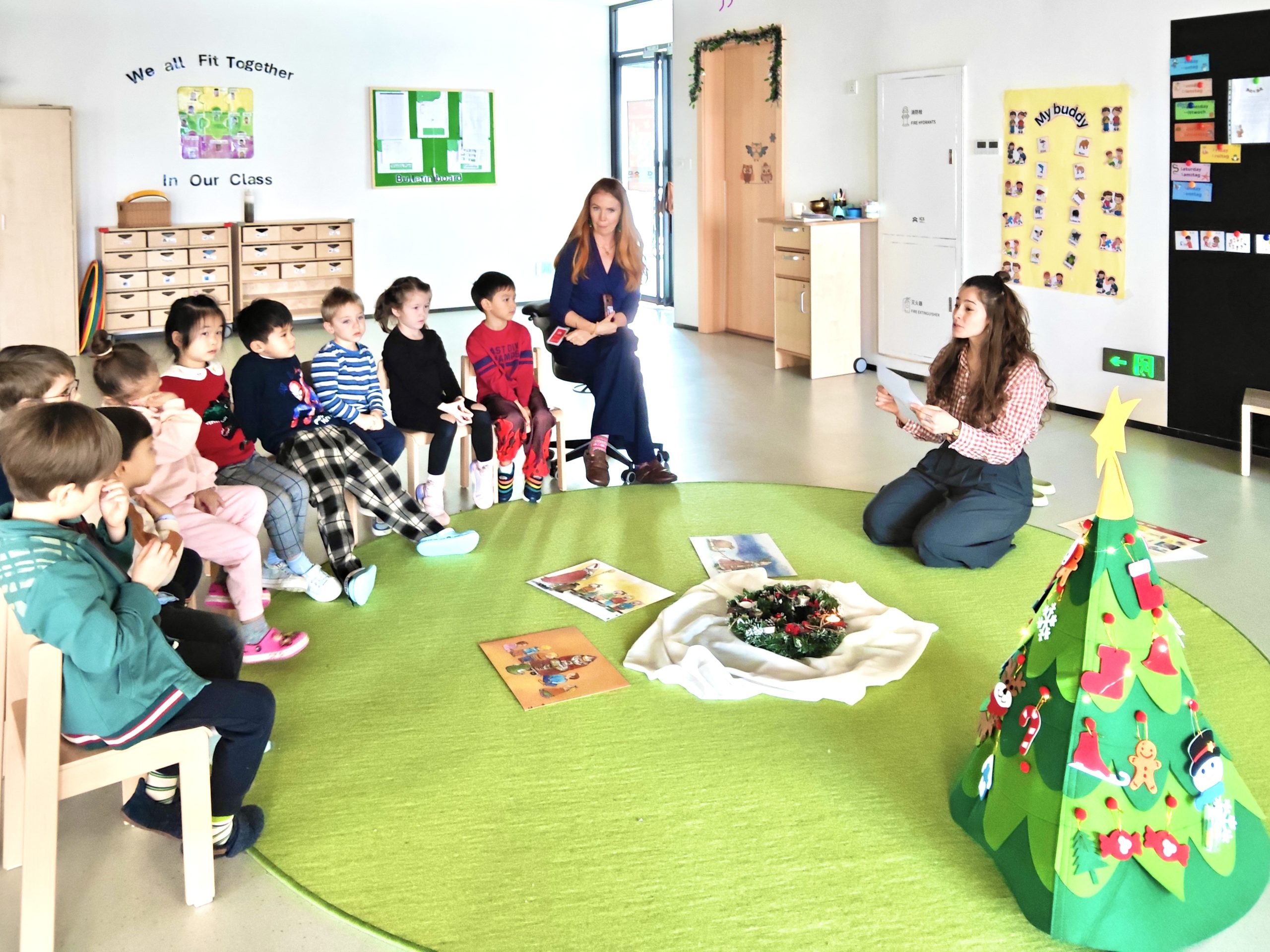 Am Freitag, dem 5. Dezember, feierten wir gemeinsam mit den Kindern den Nikolaustag. Als sie ankamen, leuchteten ihre Augen auf, als sie die liebevoll geschmückten Räume entdeckten. Über Nacht war der Nikolaus in unserem Kindergarten gewesen und hatte einige Überraschungen für sie vorbereitet: Ihre kleinen Gummistiefel, gefüllt mit kleinen Geschenken, und einer persönlichen Botschaft für jedes Kind. Eine individuelle, anerkennende Nachricht, die der Nikolaus extra für sie geschrieben hatte.