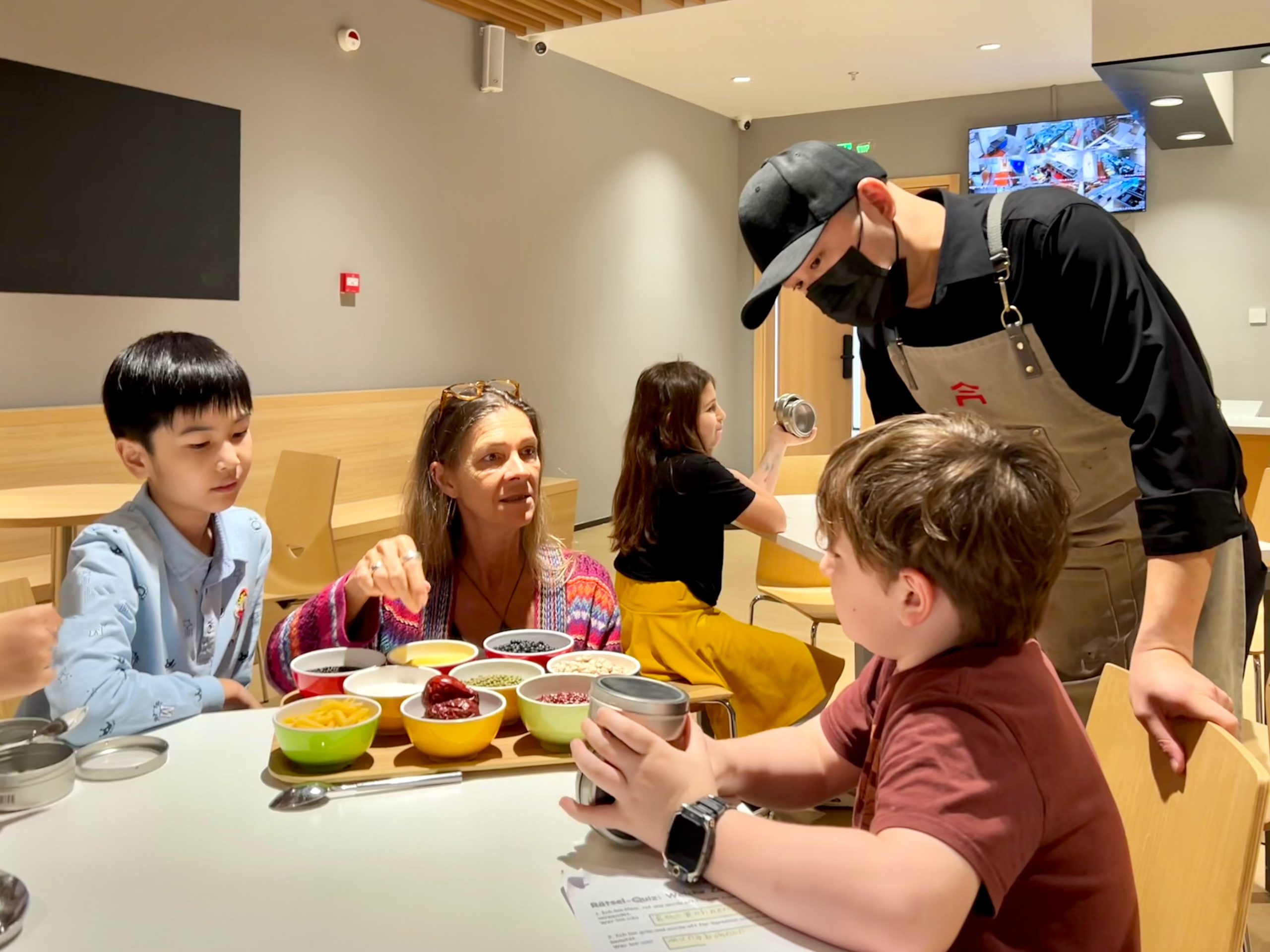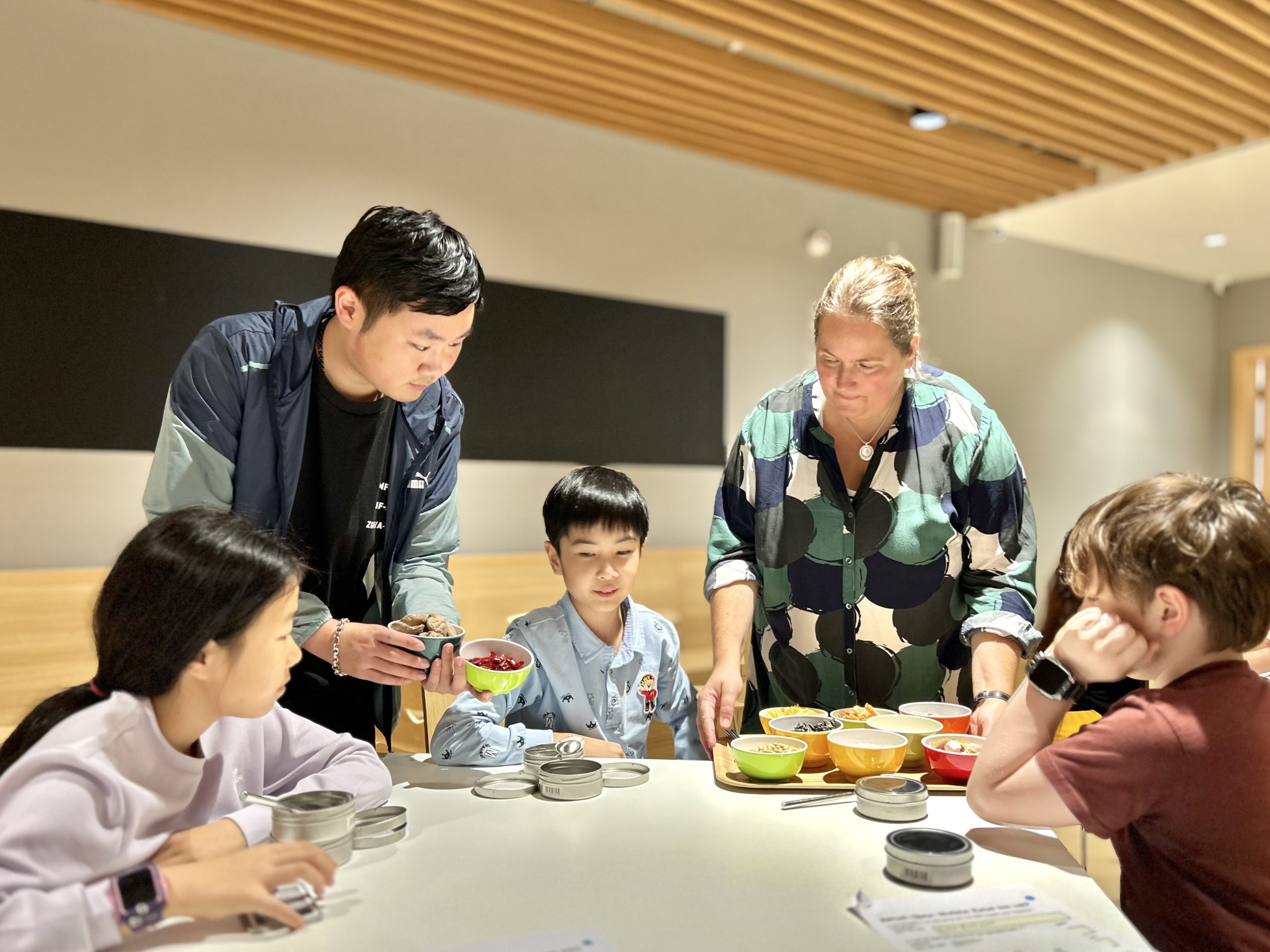 Die Kinder hatten viel Freude daran, alle verwendeten Zutaten in einem Quiz „Welche Zutat bin ich?“ herauszufinden und zuzuordnen. Zusätzlich lernten sie die Fachbegriffe in allen drei Sprachen Deutsch, Englisch und Chinesisch.