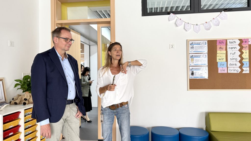 During a tour of our learning spaces and campus facilities, Mr Gross highlighted the thoughtful design of our internationally oriented classrooms and our student-centred ethos. He also praised the school’s rapid development from the ground up, noting that IGS Hefei’s swift construction and high-quality operations demonstrate strong capability in international education.