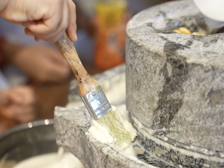孩子们将豆糊加水搅拌均匀,用细密的纱布过滤、挤压,分离出豆渣,剩下的部分经过加热、凝固等工序,逐渐凝聚成鲜嫩的豆腐。煮沸的豆浆香气四溢,醇厚的味道里,满是用双手创造美食的成就感。